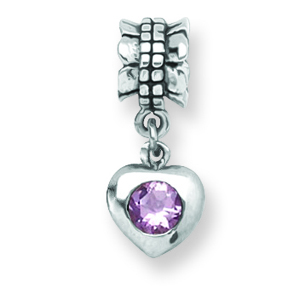 Sterling Silver Reflections Pink Cubic Zirconia Heart Dangle Bead