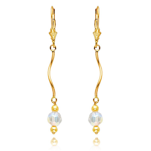14K Gold Aurore Boreale Crystal Bead Leverback Earrings
