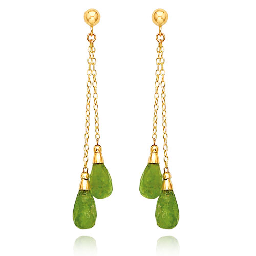 These lovely dangle earrings are every girl's fantasy. Strands of yellow gold dropping into bright green peridot make these earrings simply stunning.