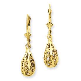 Picture of 14K Gold Polished & Diamond-Cut Filigree Dangle Leverback Earrings
