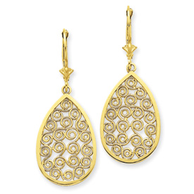 14K Gold Teardrop Filigree Dangle Leverback Earrings