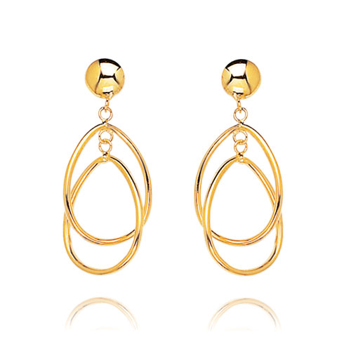 14K Gold Garnet Triple Drop Circle Dangle Post Earrings