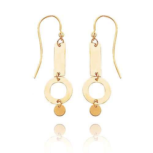 14K Polished Link And Open Circle Dangle Wire Earrings