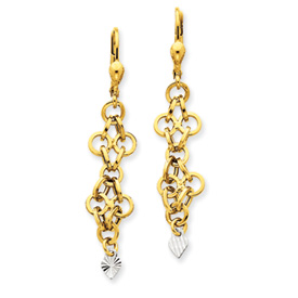 14K Two-Tone Gold Dangle Heart Lever Back Earrings