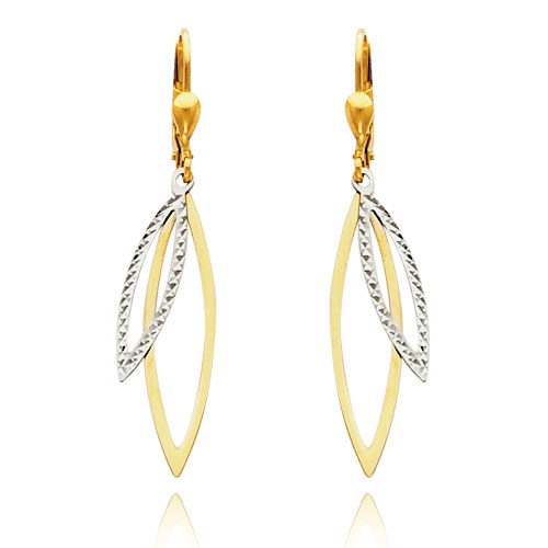 14K Two-Tone Gold Diamond-Cut Leverback Earrings