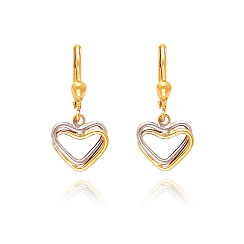 14K Two-Tone Heart Leverback Dangle Earrings