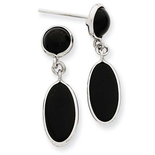 Picture of 14k White Gold Onyx Oval Dangle Post Earrings