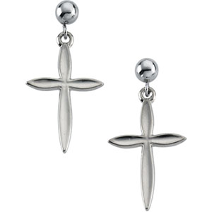 Picture of 14kt White PAIR 18.00X13.00 MM Polished CROSS BALL DANGLE EARRING