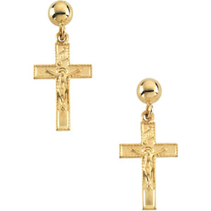 Picture of 14kt Yellow PAIR 14.00X09.00 MM Polished CRUCIFIX BALL DANGLE EARRING