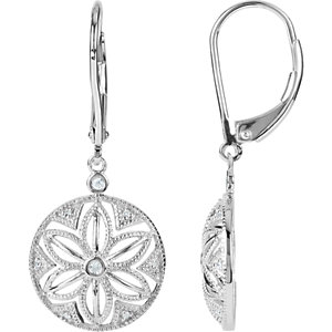 14kt White PAIR/.04 CT TW Polished DIAMOND LEVER BACK EARRINGS