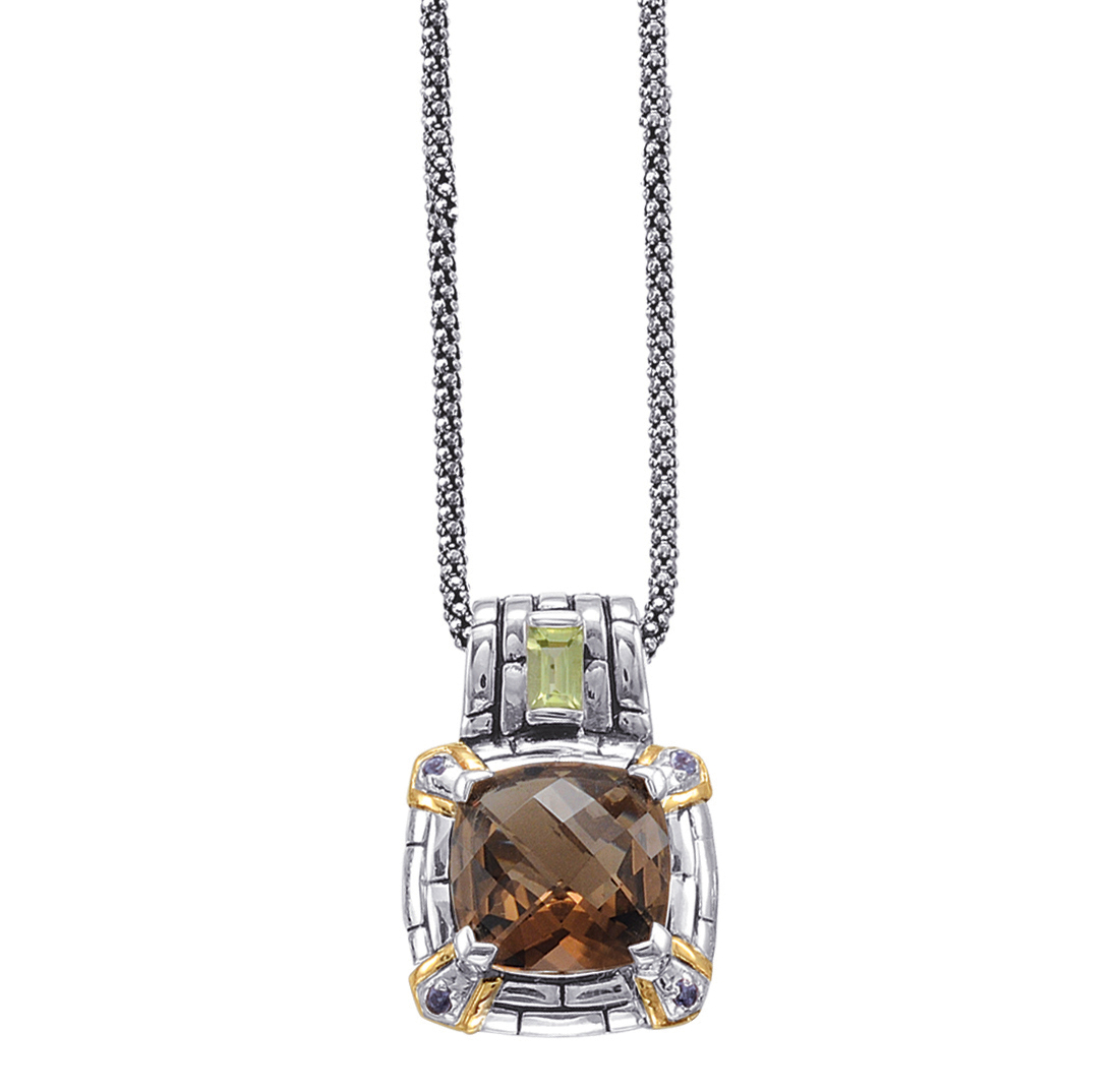 Alesandro Menegati 14K Accented Sterling Necklace with Smoky Quartz/Peridot/Iolites