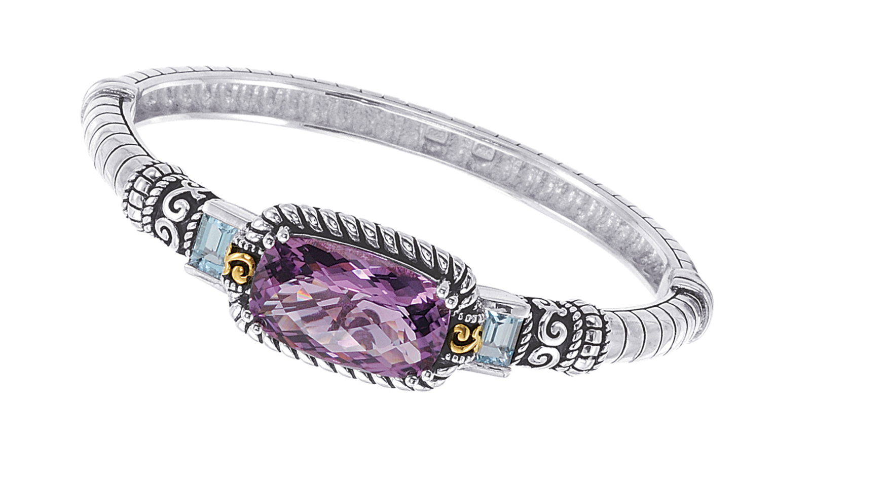 Alesandro Menegati 14K Accented Sterling Silver Bangle with Blue Topaz and Amethyst