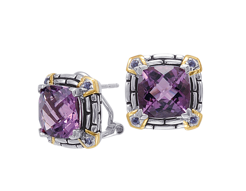 Alesandro Menegati 14K Accented Sterling Silver Earrings with Amethyst and Iolite