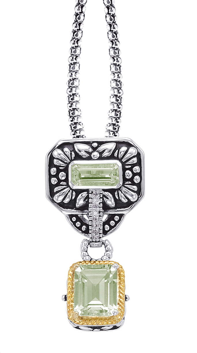 Alesandro Menegati 14K Accented Sterling Silver Green Amethyst and Diamonds Necklace