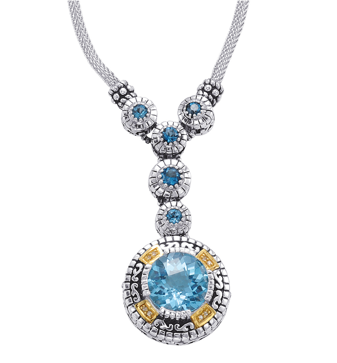 Picture of Alesandro Menegati 14K Accented Sterling Silver Necklace with Blue Topaz and Diamonds