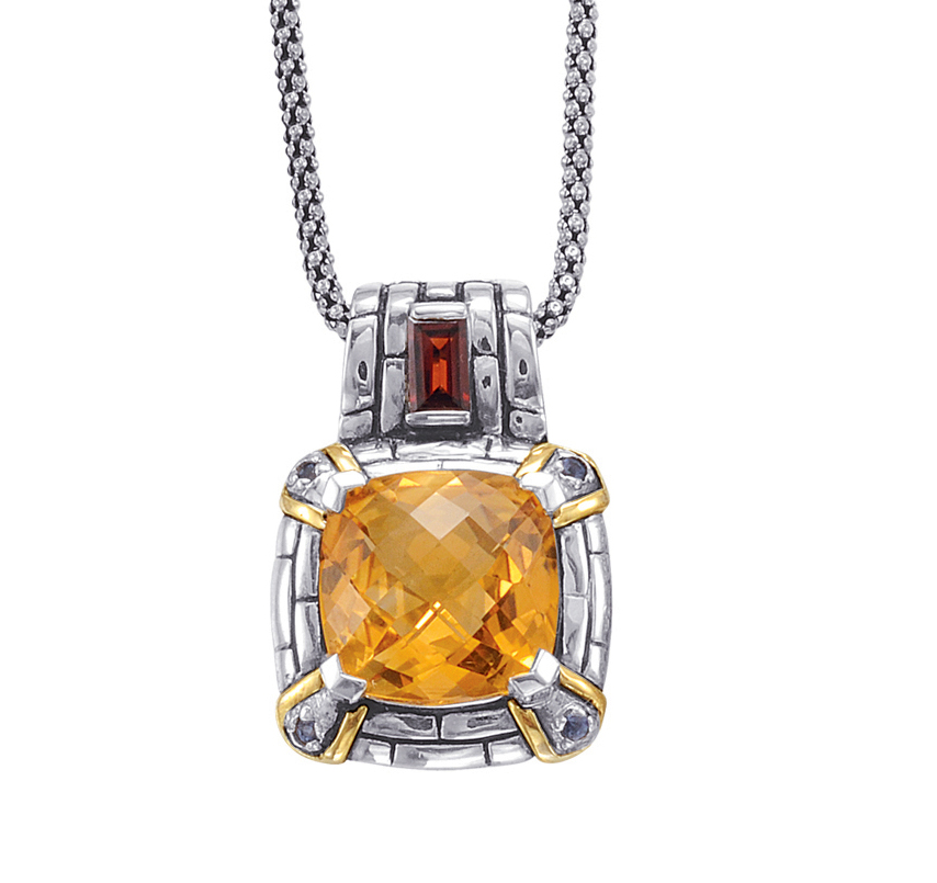 Alesandro Menegati 14K Accented Sterling Silver Necklace with Citrine and Garnet