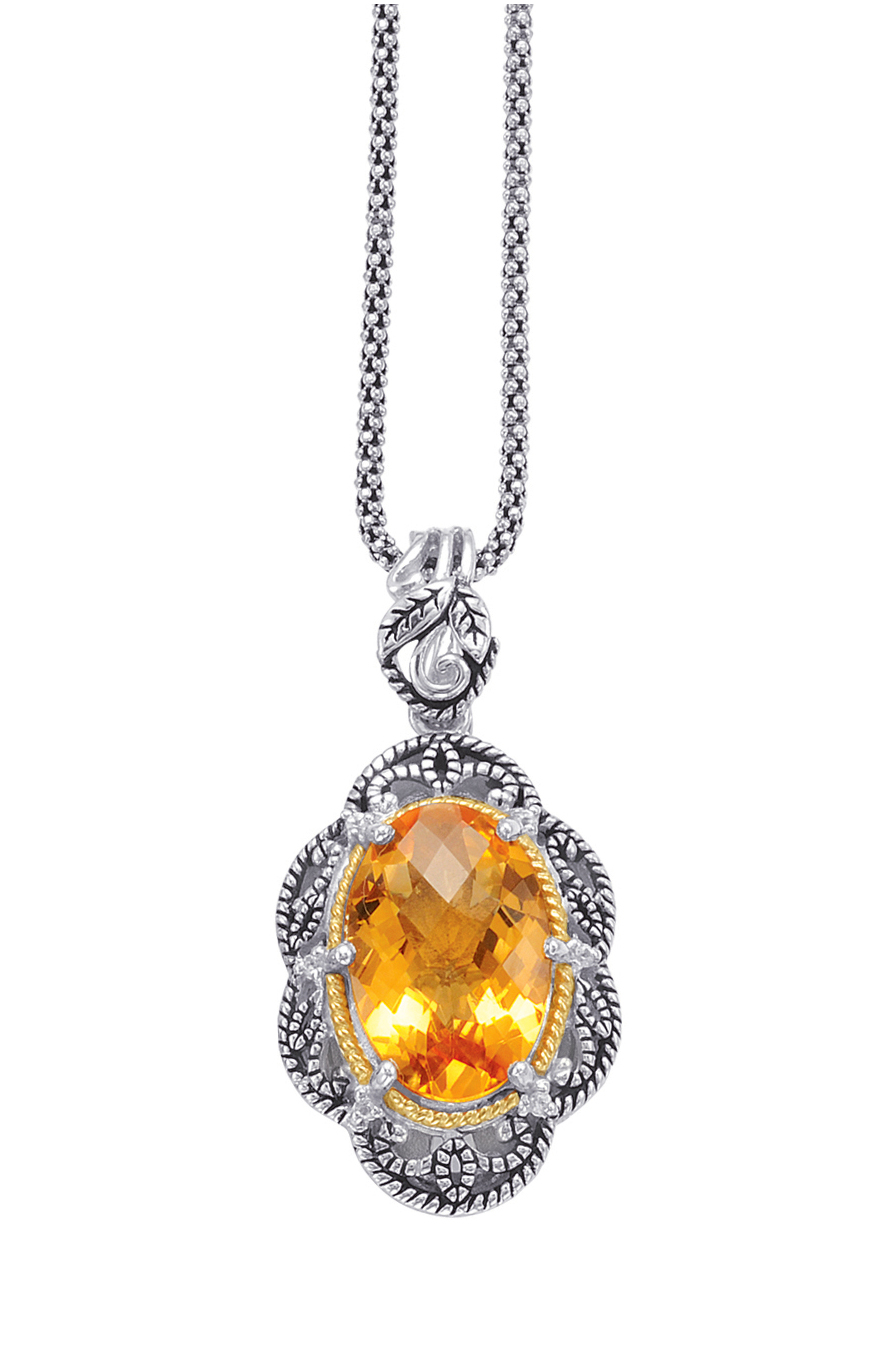 Picture of Alesandro Menegati 14K Accented Sterling Silver Necklace with Citrine and White Topaz