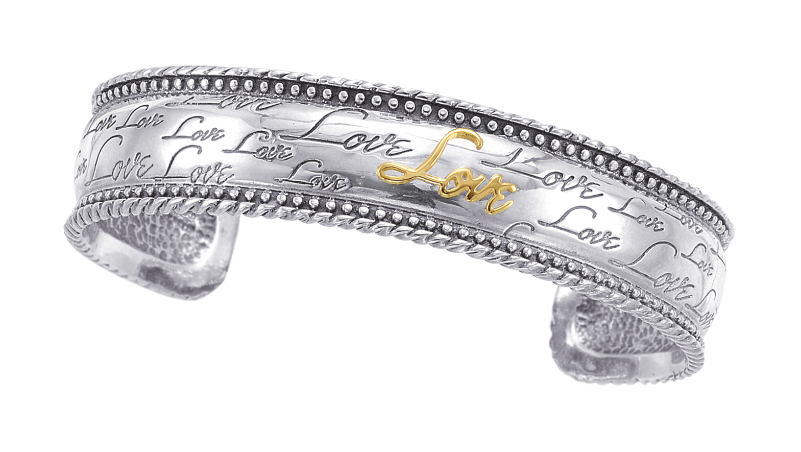 14K Gold & Sterling Silver "Love" Bangle