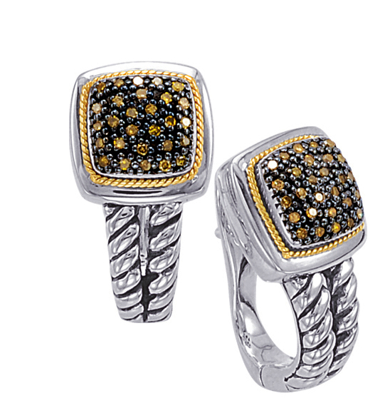 18K Accented Sterling Silver Earrings with Black Diamonds
