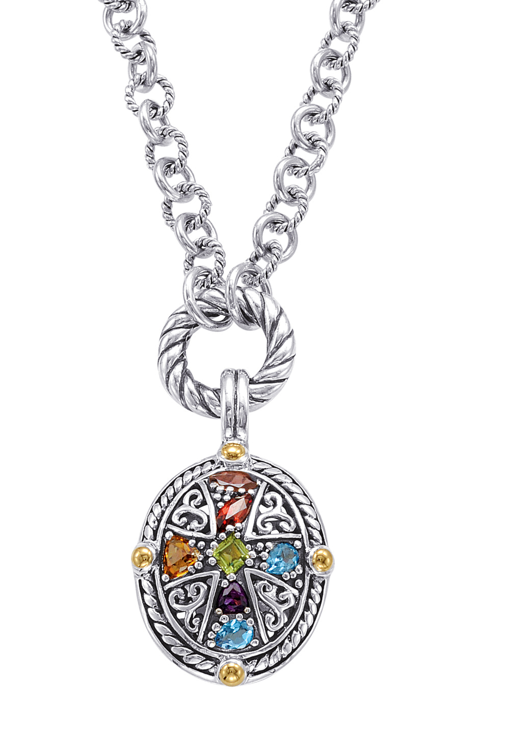 Alesandro Menegati 18K Accented Sterling Silver Multi Gemstones Necklace