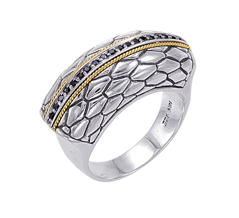 Alesandro Menegati 18K Accented Sterling Silver Ring with Black Diamonds