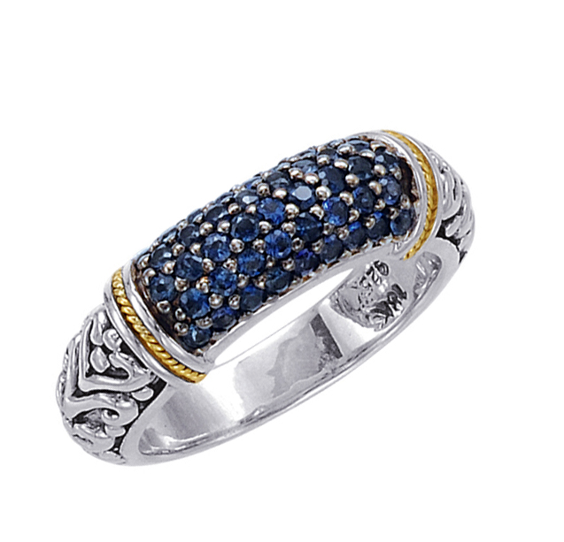 18K Accented Sterling Silver Ring with Blue Sapphires