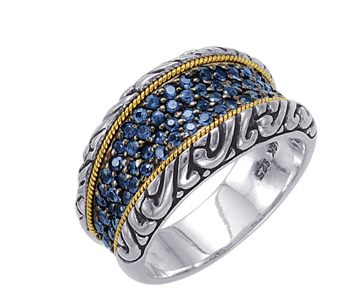 18K Accented Sterling Silver Ring with Blue Sapphires