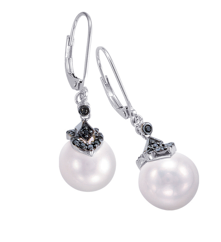 Picture of Alesandro Menegati Sterling Silver Black Diamonds and Pearl Earrings