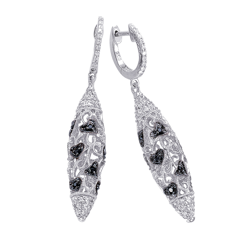 Sterling Silver Black Diamonds and White Topaz Fancy Fashion Earrings