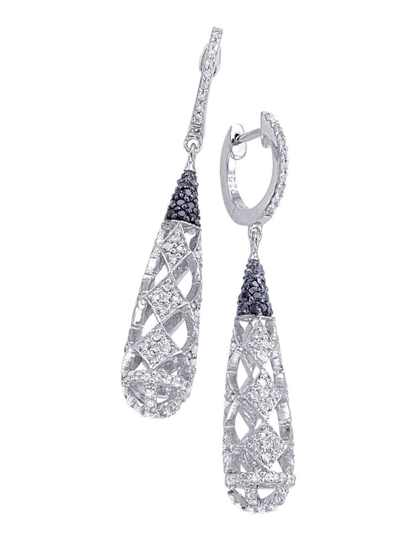 Picture of Alesandro Menegati Sterling Silver Black Diamonds and White Topaz Fancy Fashion Earrings