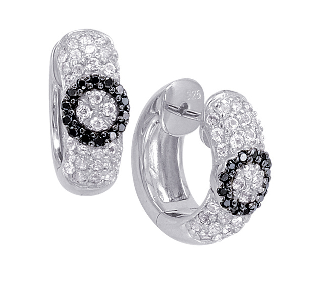 Sterling Silver Black Diamonds and White Topaz Fashion Fancy Hoop Earrings