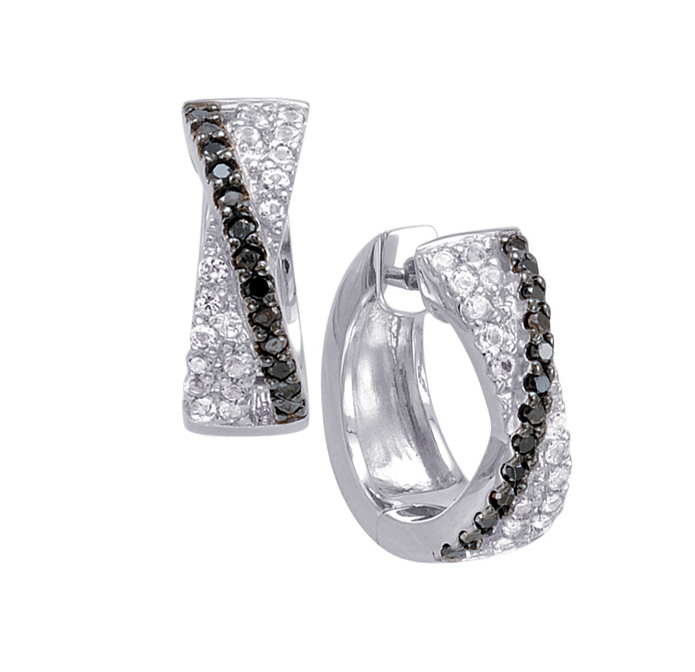 Picture of Alesandro Menegati Sterling Silver Black Diamonds and White Topaz Fashion Fancy Hoop Earrings