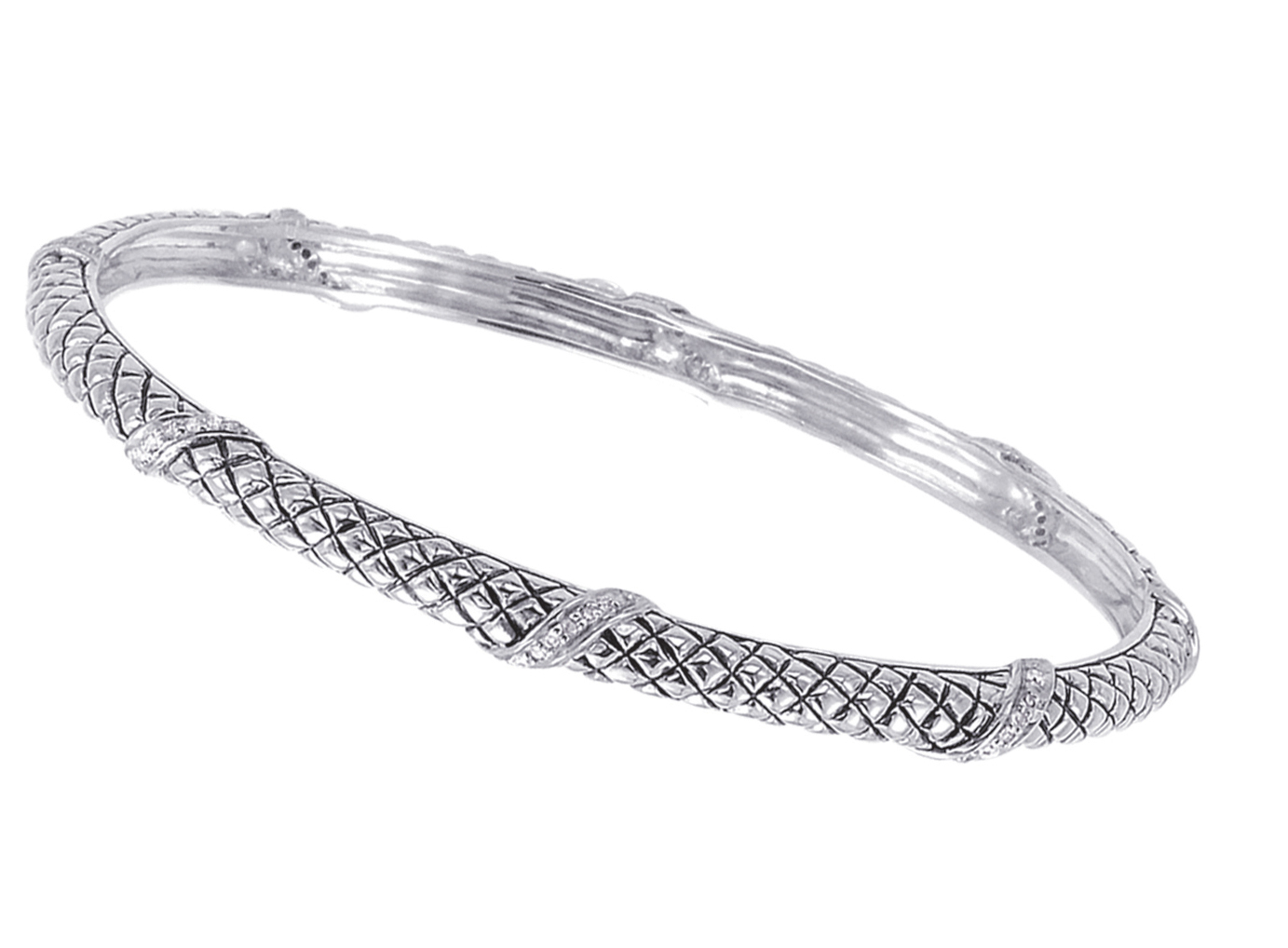 Sterling Silver Designer Fashion Bangle with Diamonds