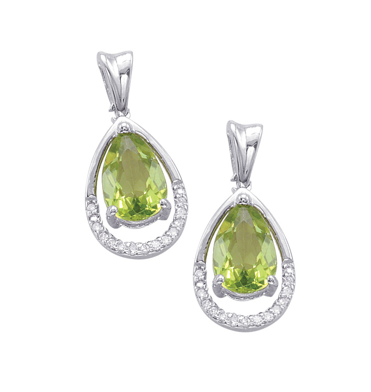 Sterling Silver Earrings with Diamonds and Peridots