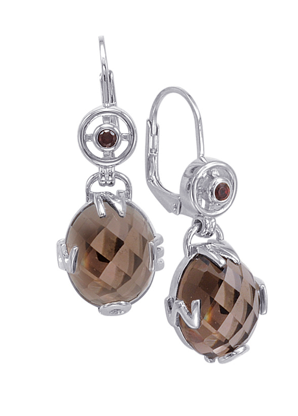 Alesandro Menegati Sterling Silver Earrings with Smoky Quartz and Garnet