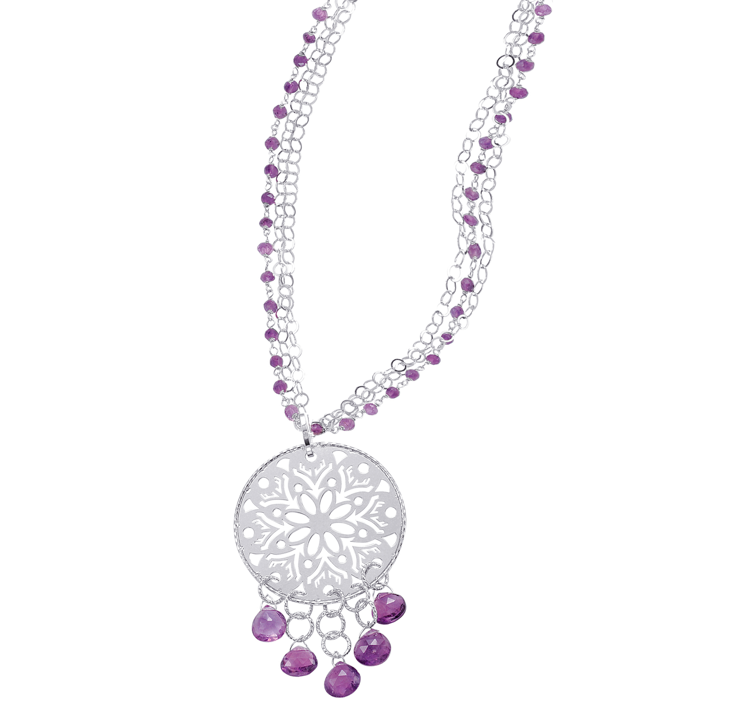Alesandro Menegati Sterling Silver Fashion Necklace with Amethysts