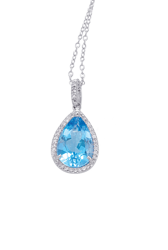 Sterling Silver Necklace with Diamonds and Blue Topaz