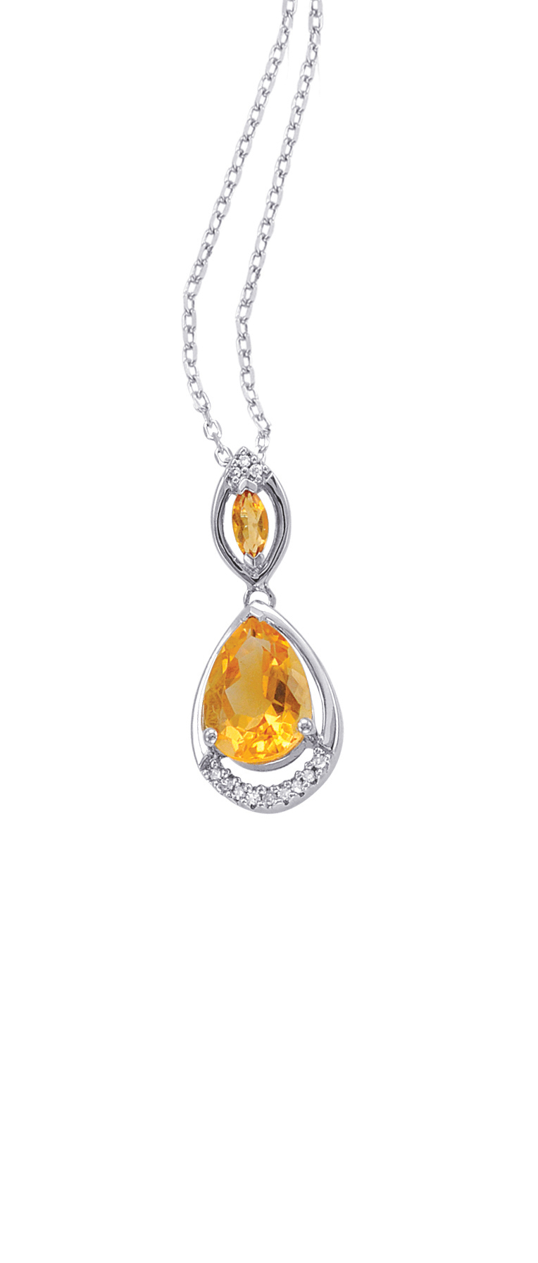 Sterling Silver Necklace with Diamonds and Large Citrine