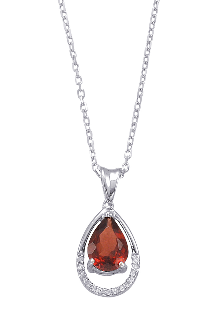 Alesandro Menegati Sterling Silver Necklace with Diamonds and Large Garnet