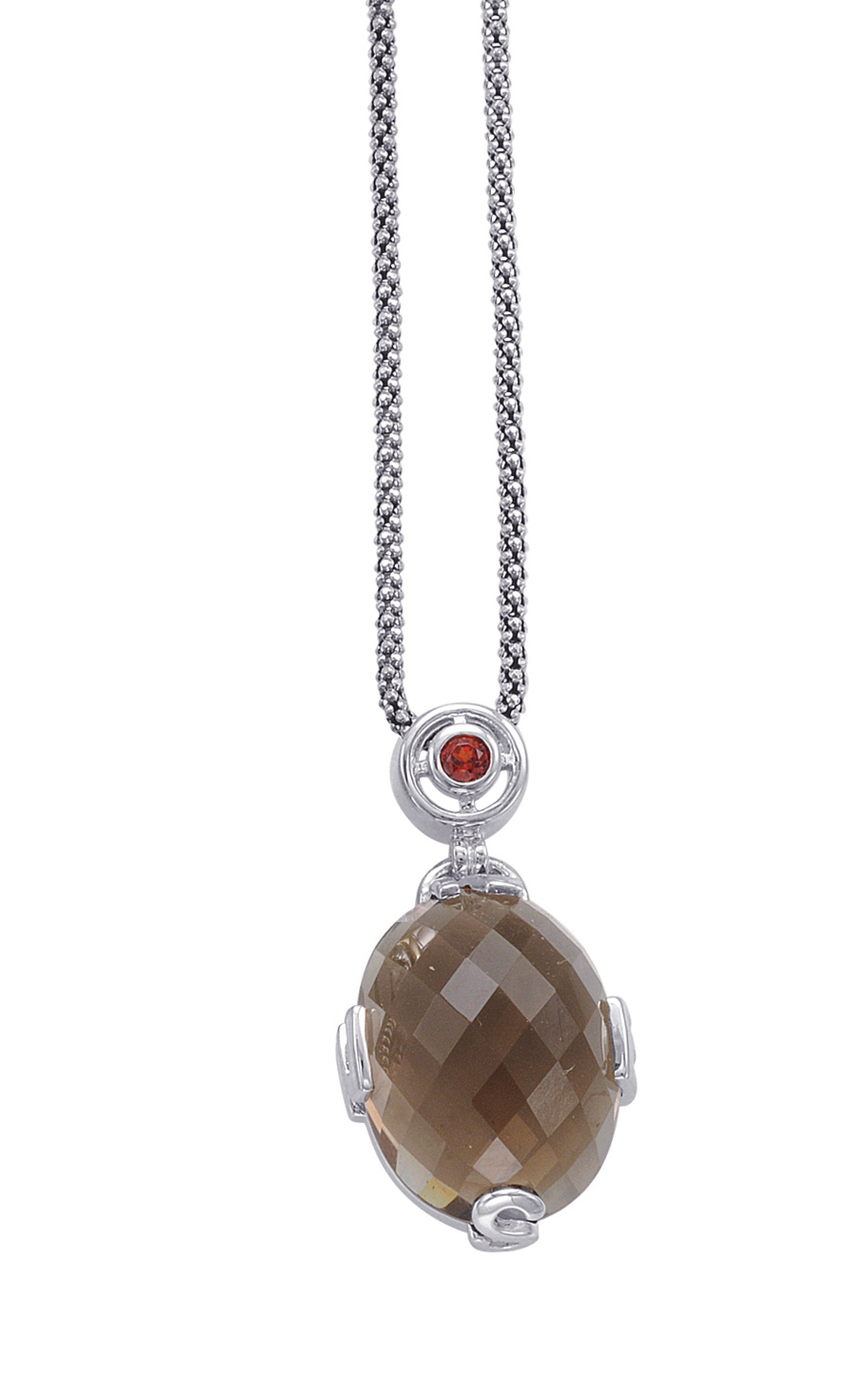 Alesandro Menegati Sterling Silver Necklace with Smoky Quartz and Garnet