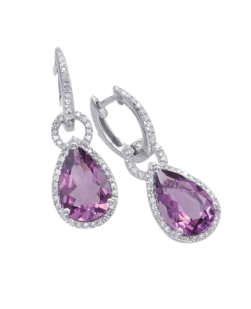 Sterling Silver Pendant Earrings with Diamonds and Amethyst