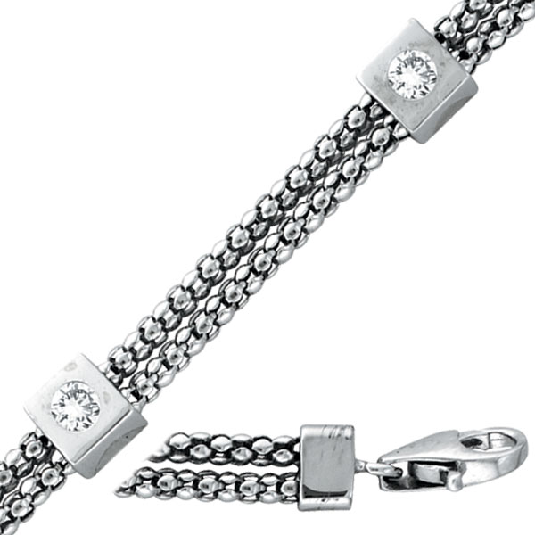 14K White Gold Diamond 7 Square Beads & Double Chain Bracelet