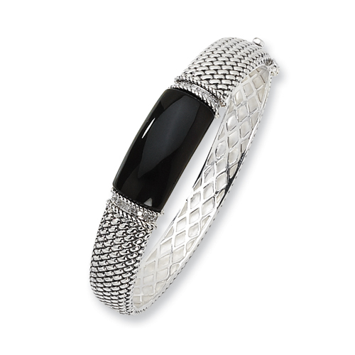 Picture of Sterling Silver Diamond and Onyx Antiqued Hinged Bangle Bracelet
