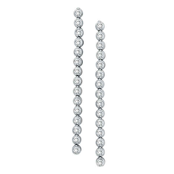14K White Gold 1.11ct 30-Diamond Drop Bezel Set Earrings