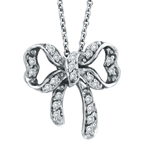 14K White Gold .26ct Diamond Bow Pendant On Link Chain Necklace