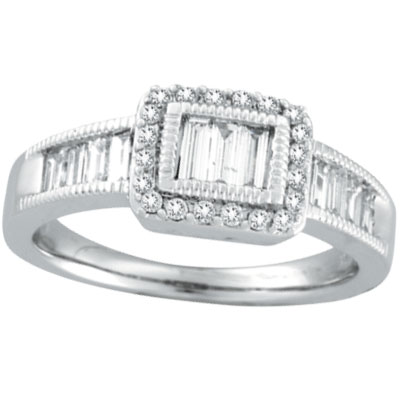 14K White Gold .75ct Baguette Diamond Detailed Ring