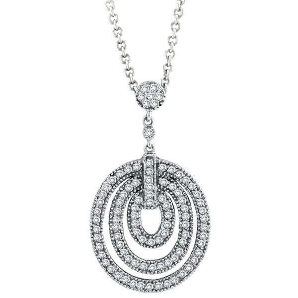 14K White Gold .88ct Diamond Graduated Circle Pendant On Cable Chain Necklace