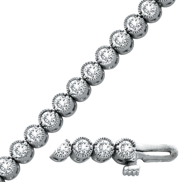 14K White Gold Bezel Set Diamond Tennis Bracelet