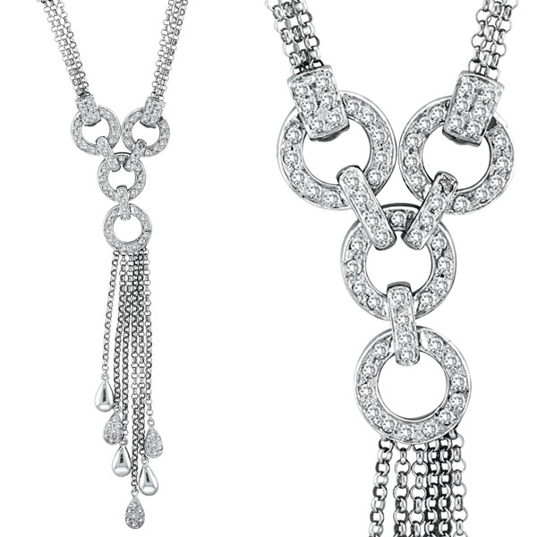 14K White Gold Diamond Circles & Drops Multi Chain Necklace