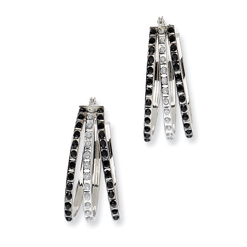 14k White Gold Diamond Fascination B & W Dia. Triple Oval Hinged Hoop Earri